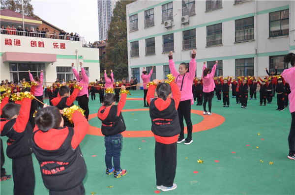 本次展览的活动是我们幼儿园教研组全体工作人员不断探索:如何改变原有儿童广播操固定不变的形式,进而结合我们多年挖掘的丰富资源形成的花园式民俗游戏的独特特点,与现有的广播操进行整合。我们尽量让大、中、小班三个年龄段的孩子,根据自己的年龄特点、已有的生活经历和能力发展水平,自主选择自己感兴趣的游戏活动,年级组的老师对孩子选择的内容进行整理、引导和提炼,并在形式上进行创造,从而形成一个多元化、开放、动态的满足孩子兴趣和能力发展需要的早操。这种早操更有趣,更受孩子们的欢迎,从而激发了他们参与活动的热情。尽量跟随孩子,注重“游戏精神”,促进师生共同发展成长。
