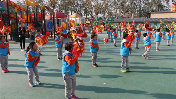 后来,大班的孩子们展示了集体游戏“舞龙真有趣”