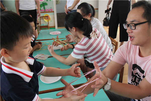 踢毽子,跳房子,抽乌龟,跳橡皮筋,抱箍.这些游戏都来自父母的最爱。每个班的老师根据每个游戏的特点设置合理的场地,等待家长和孩子的参与。