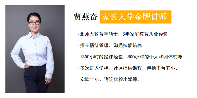 来自家长大学的金牌老师:本次直播特别邀请了北京师范大学教育硕士贾芬燕老师,用专业知识回答您的问题。