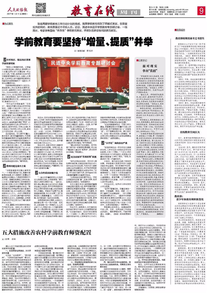 随着学前教育两个阶段三年行动计划的完成,中国学前教育实现了跨越式发展。虽然数量有所增加,但教育质量并不令人满意。最近,今敏中央委员会举行了一次关于学前教育的特别研讨会。一线校长、专家学者对发展“全纳”学前教育和师资队伍建设提出了建议。普惠公司在农村和偏远地区缺少学前资源。“我刚从云南省的一项调查中回来。云南省五分之二的儿童无法进入幼儿园。普洱市有107个乡镇,30多个乡镇没有公立幼儿园。「日前,全国人大常委会委员、北京师范大学中国教育政策研究所副所长庞在中共中央举办的学前教育专题研讨会上,提供了一套资料,引起与会人士的关注。正如教育部学前教育办公室主任、第二基础教育司巡视员李天顺所说,2015年,全国三年学前教育毛入学率达到75%,幼儿园数量比2009年增加了61%。但与此同时,农村、少数民族地区和连片贫困地区的学前教育资源仍然不足,录取率相对较低,一般在50%以下。”农村已经成为学前教育的“空白地带”。像我们内蒙古自治区的农村和牧区一样,方圆十几英里只有几个孩子。在这种情况下,建立一个标准的幼儿园是不可能的。内蒙古自治区呼和浩特市新城区教育局工会主席雷霍表示,在内蒙古,城市公办幼儿园占所有幼儿园的不到1/5,注册民办幼儿园占剩余的2/5,还有一些被称为“黑花园”。以首都呼和浩特为例,这个城市有九个县。除了市内的四个区外,只有土佐旗和吴川县建立了数量很少的公园,其他三个区都没有公园。在这些地区,幼儿园的数量不仅少,而且教学条件和质量更令人担忧。中国教育研究院基础教育研究所副教授高秉诚表示,2014年中国教育研究院对西部五个国家级贫困县的442所幼儿园进行的调查显示,五个县幼儿园的小学、中学、高中和混合年龄班的平均班级规模分别达到32、36、40和44个,甚至出现了153名和181名儿童的超大班级34%的幼儿园没有任何户外运动设施;68%的幼儿园没有游戏活动区。大约80%的幼儿园缺乏基本的玩具和游戏材料。”高秉诚说道。教师问题是重中之重。”学前教育教师存在两个主要问题。一是教师短缺。随着学前教育的发展,幼儿园教师的数量已经不能满足实际需要。第二,教师的工资不够吸引人。随着各地实行绩效工资,公办幼儿园教师的工资相对有保障,但公办幼儿园编外教师和民办幼儿园教师的工资相对较低。教育部教师工作司副司长尹长春引用相关数据介绍,2015年民办幼儿园教师127.1万人,占幼儿园教师总数的62%,公办幼儿园编外人员使用的教师约占35%。然而,根据调查,这两名教师的平均工资仅占该组织教师的40%左右。对此,雷霍以呼和浩特新城区为例进行了证明。当地有27所公立小学,只有5所公立幼儿园。由于师资短缺,5所幼儿园共有134名员工,月薪只有1000元左右。”起点低,没有职称,教师就业极不稳定。“实际上,农村学前教育师资短缺的情况更为严重。简副教授